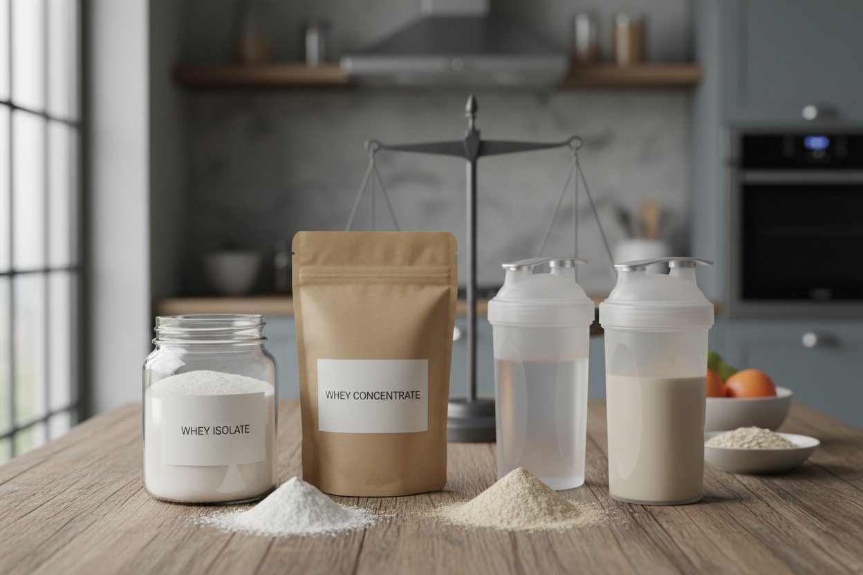 Dit toont duidelijk: isolate is "zuiverder" maar duurder. Concentraat is praktisch, goedkoop, en smaakt beter.